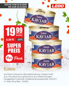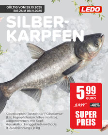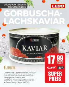 Darüber hinaus bieten wir unseren Kunden auch eine Auswahl frischen Fisch, wie z.B. Karpfen, Karausche und Lachs, an der neuen Fischtheke. Das neue Konzept ermöglicht unseren Kunden während des Einkaufs eine kulinarische Reise in eine andere Lebensmittelwelt, denn bei LEDO können Sie im Rahmen wöchentlicher Verkostungsaktionen viele Produkte - darunter auch Kaviar - probieren.